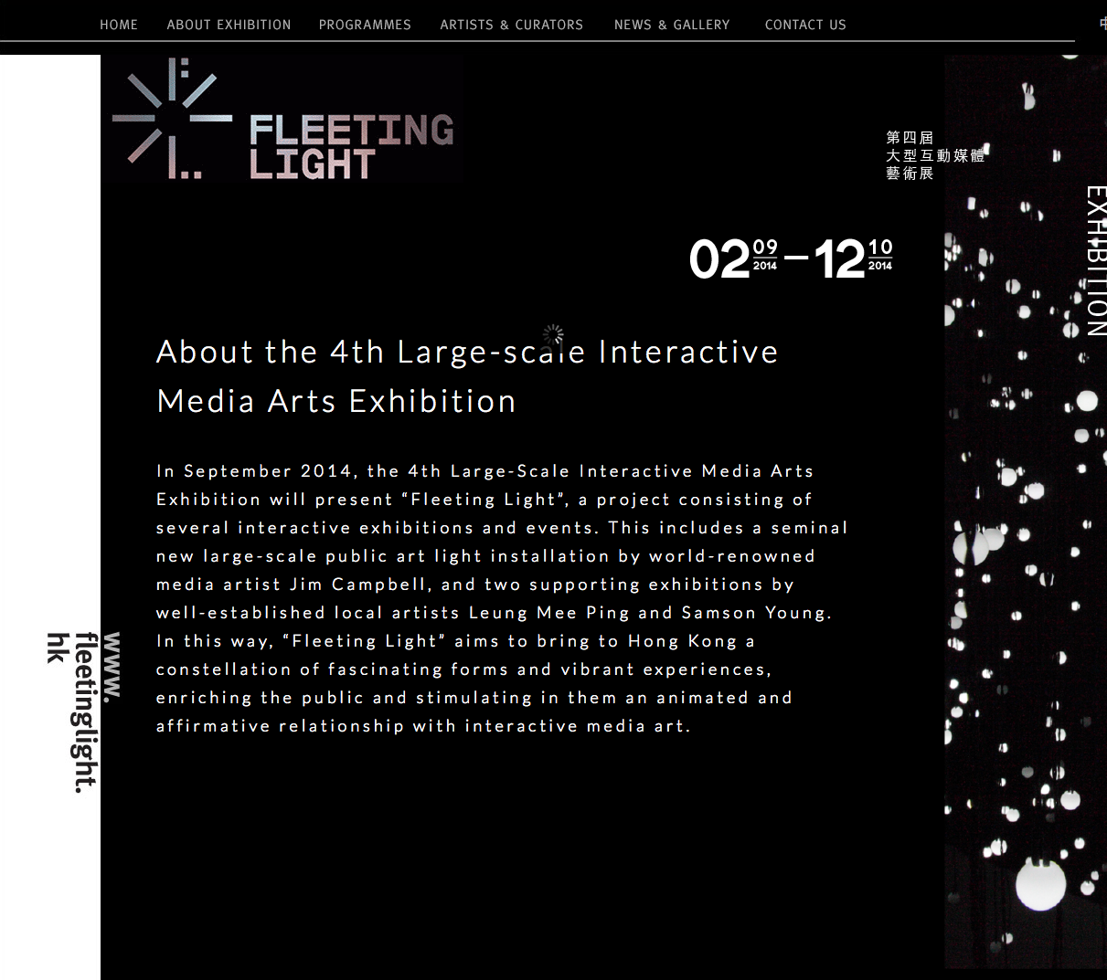In September 2014, the 4th Large-Scale Interactive Media Arts Exhibition will present “Fleeting Light”, a project consisting of several interactive exhibitions and events. This includes a seminal new large-scale public art light installation by world-renowned media artist Jim Campbell, and two supporting exhibitions by well-established local artists Leung Mee Ping and Samson Young. In this way, “Fleeting Light” aims to bring to Hong Kong a constellation of fascinating forms and vibrant experiences, enriching the public and stimulating in them an animated and affirmative relationship with interactive media art.
